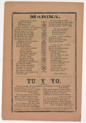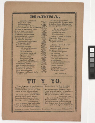 l.l. to l.r.: Timprenta de Antonio Vanegas Arroyo 2a. de Santa Teresa número 43 México 1911.