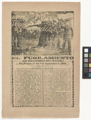c.l. to c.r.: EL FUSILAMIENTO \ DE DIONISIO SILVERIO \ En Metepec, el dia 8 de Septiembre de 1903.