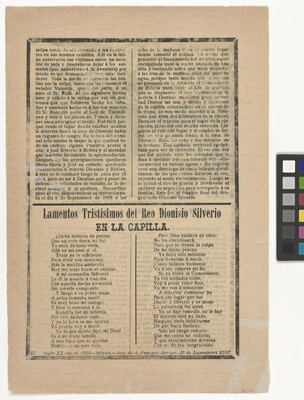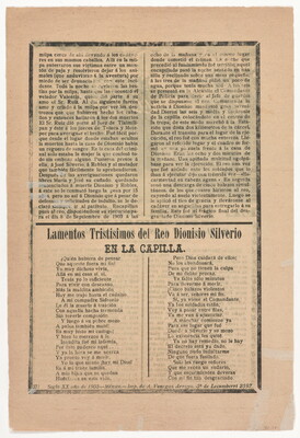 c.l. to c.r.: Lamentos Tristisimos del Reo Dionisio Silverio \ EN LA CAPILLA.