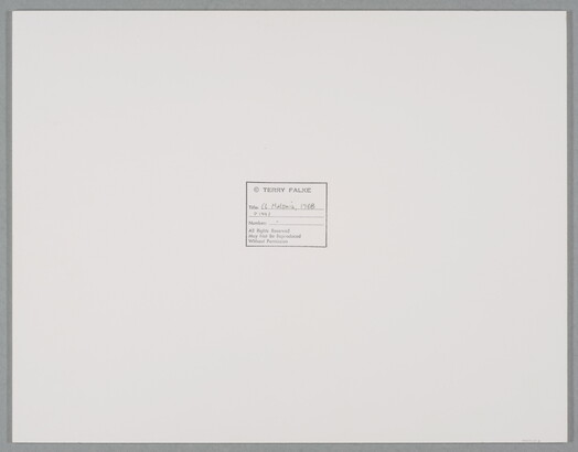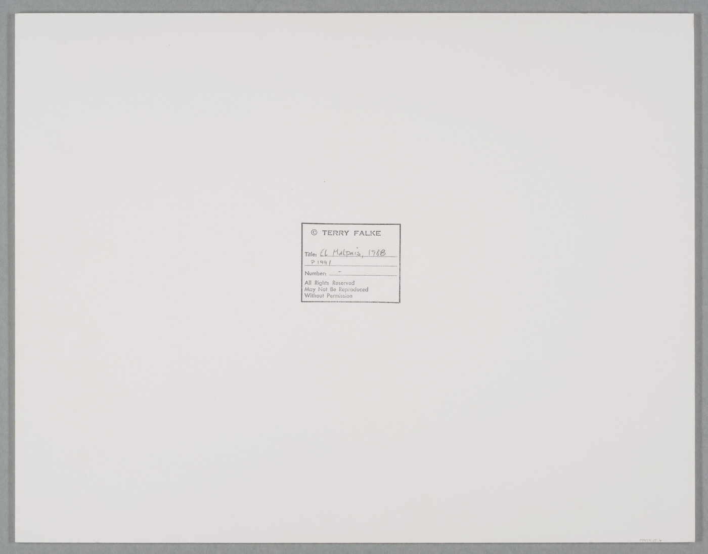 c. [stamp]: © TERRY FALKE \ Title: [graphite] El Malpais, 1988 \ [graphite] P1991 \ Number: [graphite] -- \ All Rights Reserved \ May Not Be Reproduced \ Without Permission