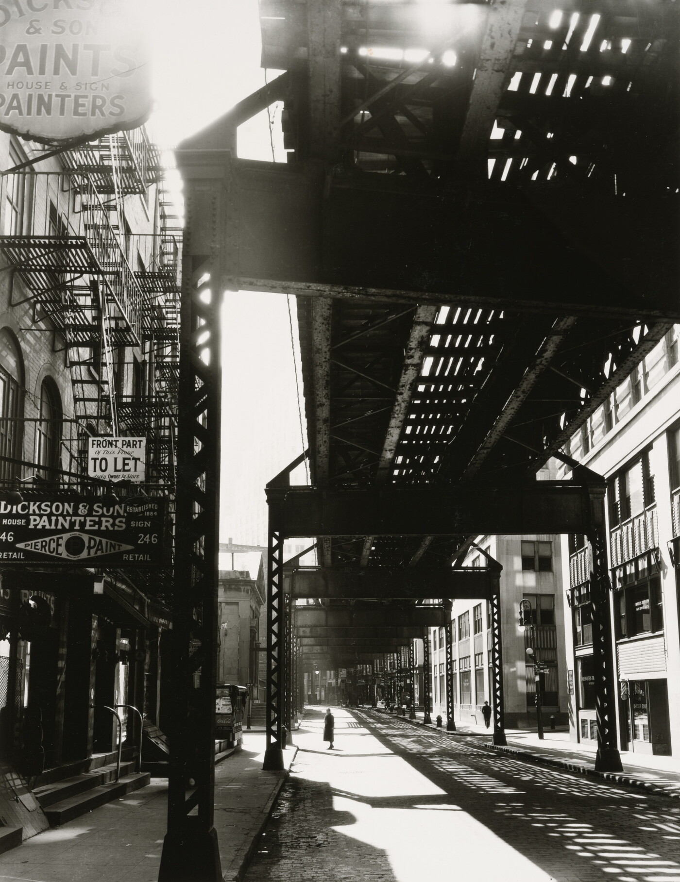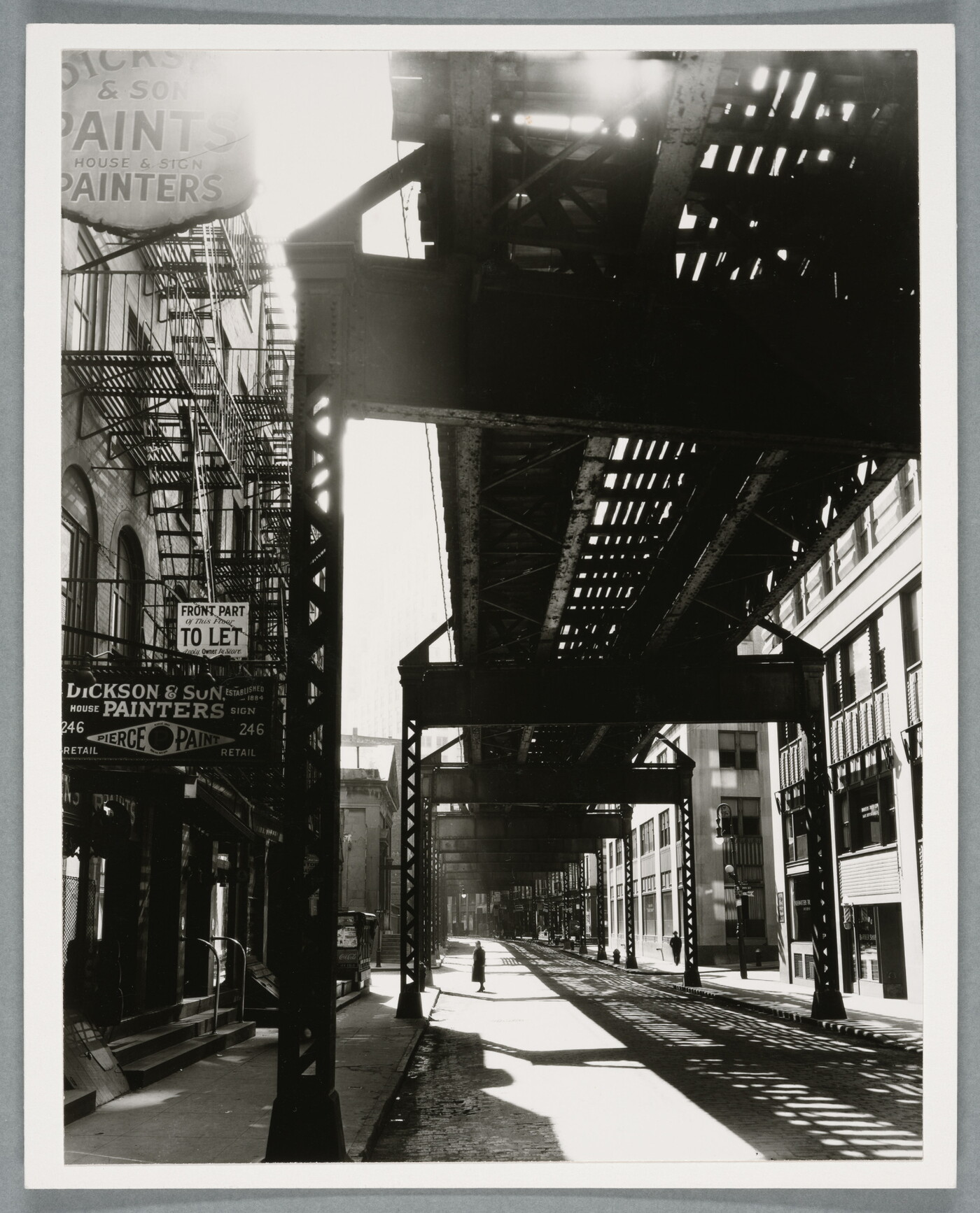 [Pearl Street, looking north under the elevated towards Ferry Street], 1936