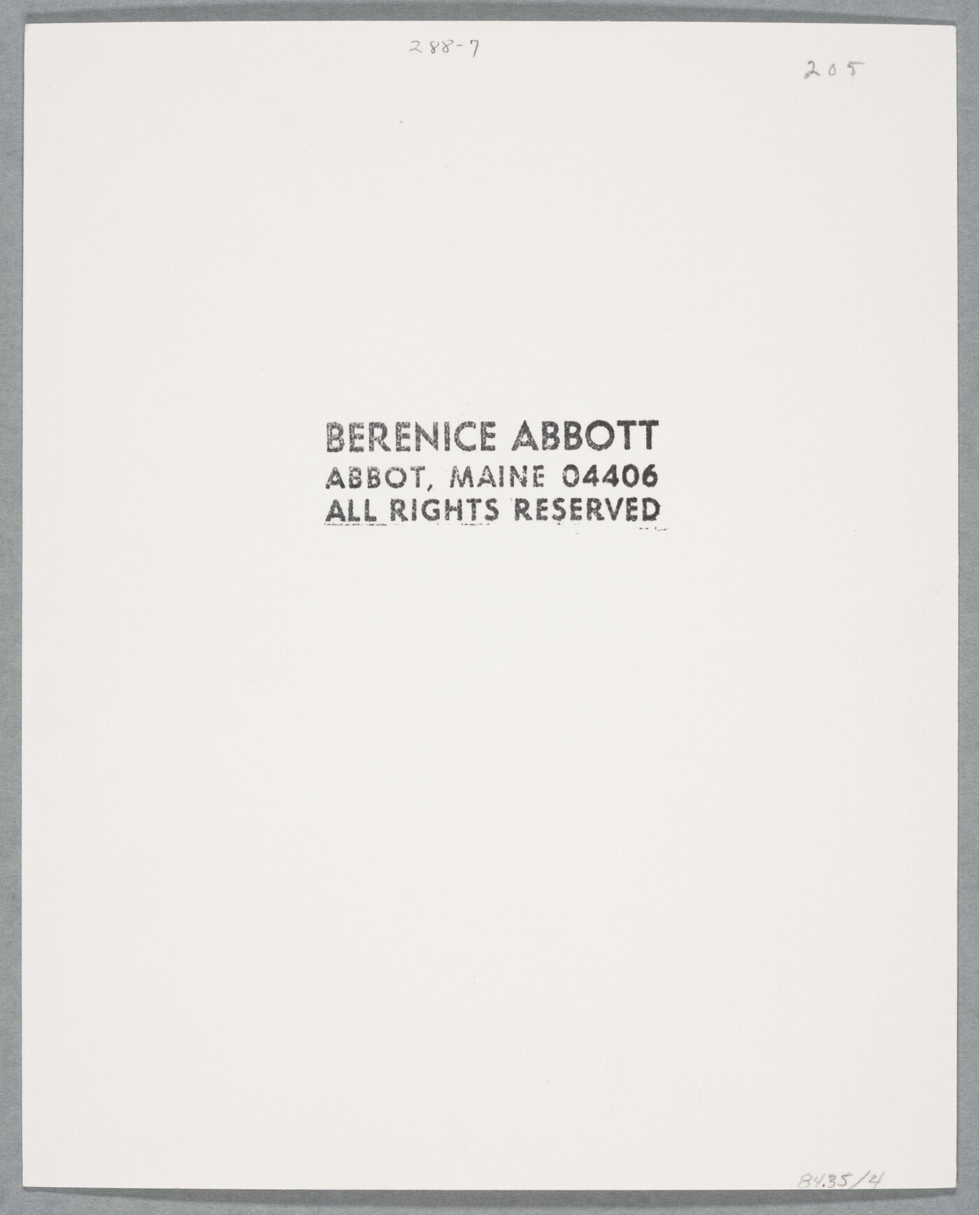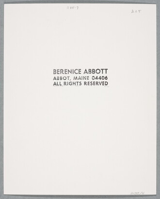 c. stamp: BERENICE ABBOTT \ ABBOT, MAINE 04406 \ ALL RIGHTS RESERVED