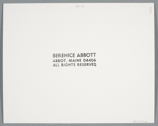 c. stamp: BERENICE ABBOTT \ ABBOT, MAINE 04406 \ ALL RIGHTS RESERVED
