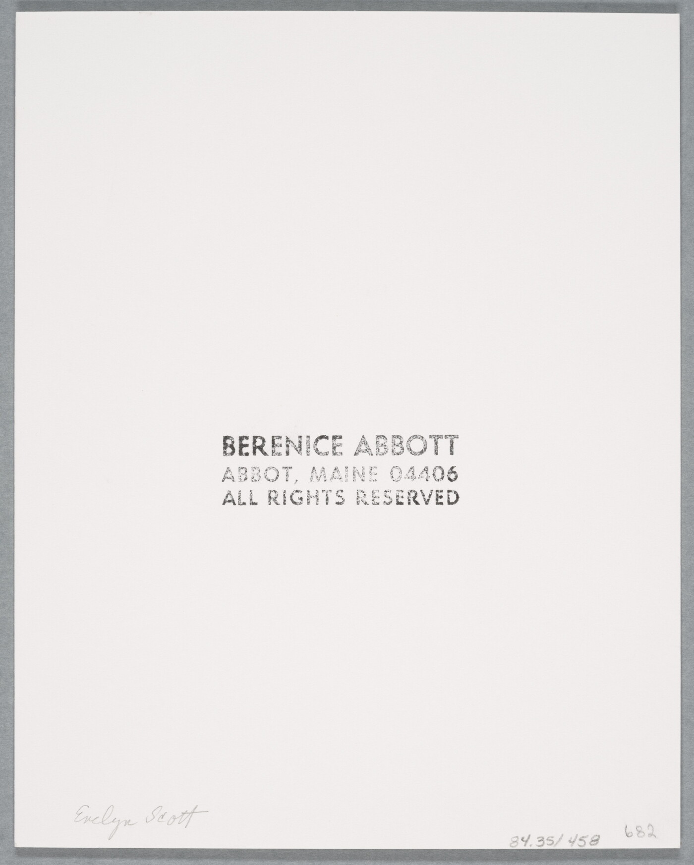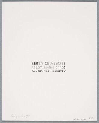 c. stamp: BERENICE ABBOTT \ ABBOT, MAINE 04406 \ ALL RIGHTS RESERVED