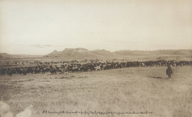 l.c. in negative: #B Evening at the Round-up, Neg Print & copyright by Huffman Milestown Mont 05.