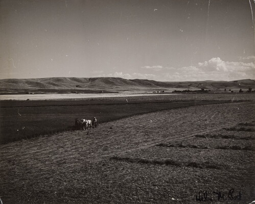 c.l. in graphite: on the farm (ranch of Yellow Tails sister, Agnes \ Deernose. Donald and Agnes had Mrs. Y.T. \ Robert Y.T. living there with them \ also the two girls who were about 10 & \ 12 in 1945.