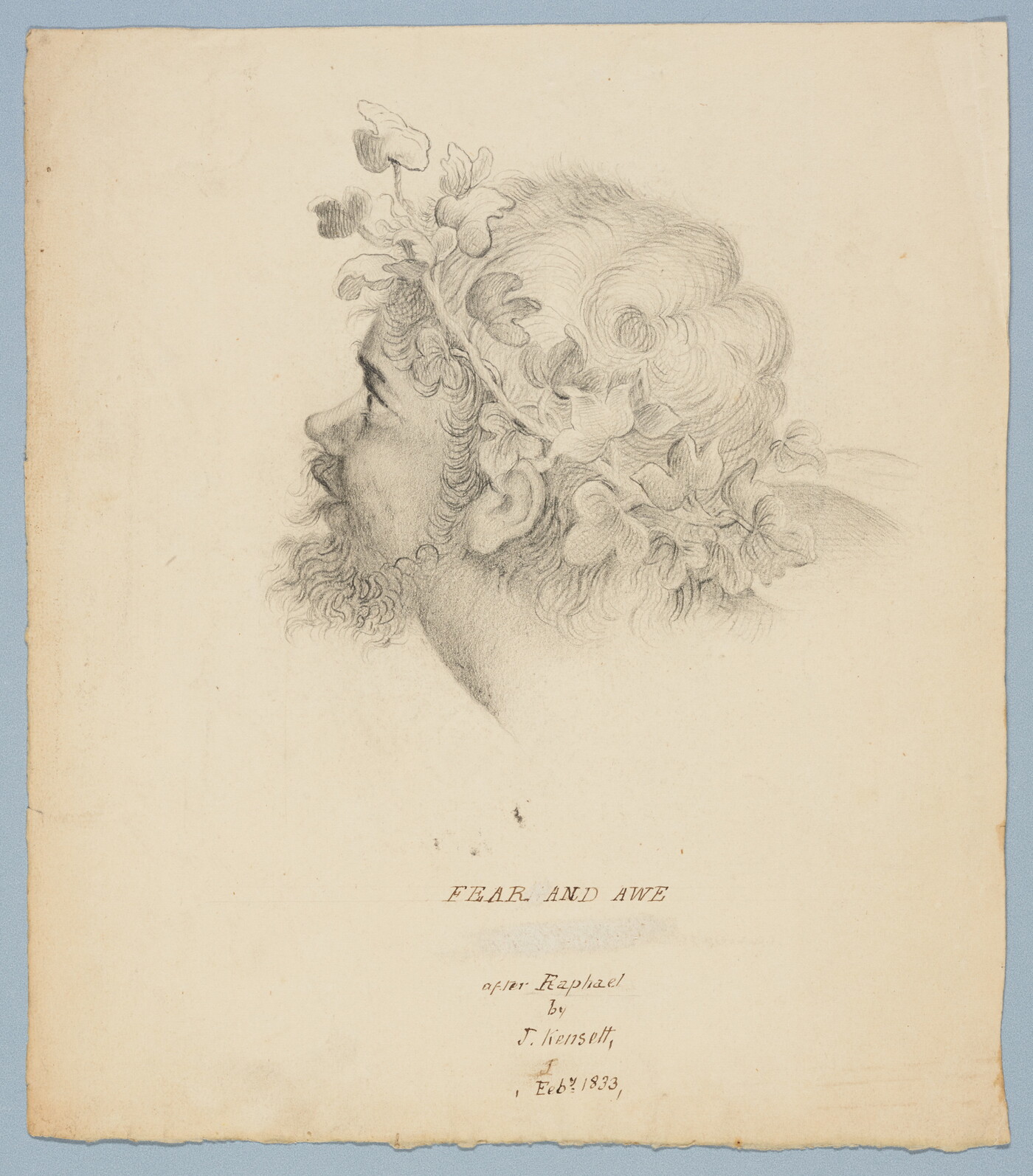 c. in ink: FEAR AND AWE / after Raphael / by / J. Kensett, / ,Feby 1833,