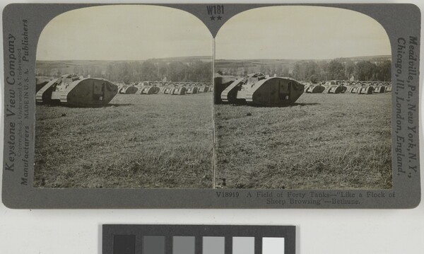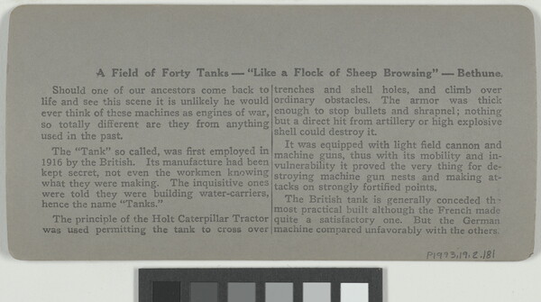 l.r. printed: V18919 A Field of Forty Tanks - "Like a Flock of \ Sheep Browsing" - Bethune.