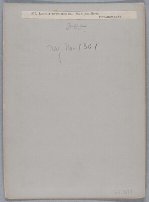u.c. to u.r. printed on paper label: 575. LOO-KIT-TOWY-HOO-RA. On a fine Horse. \ PETAHOWERAT.