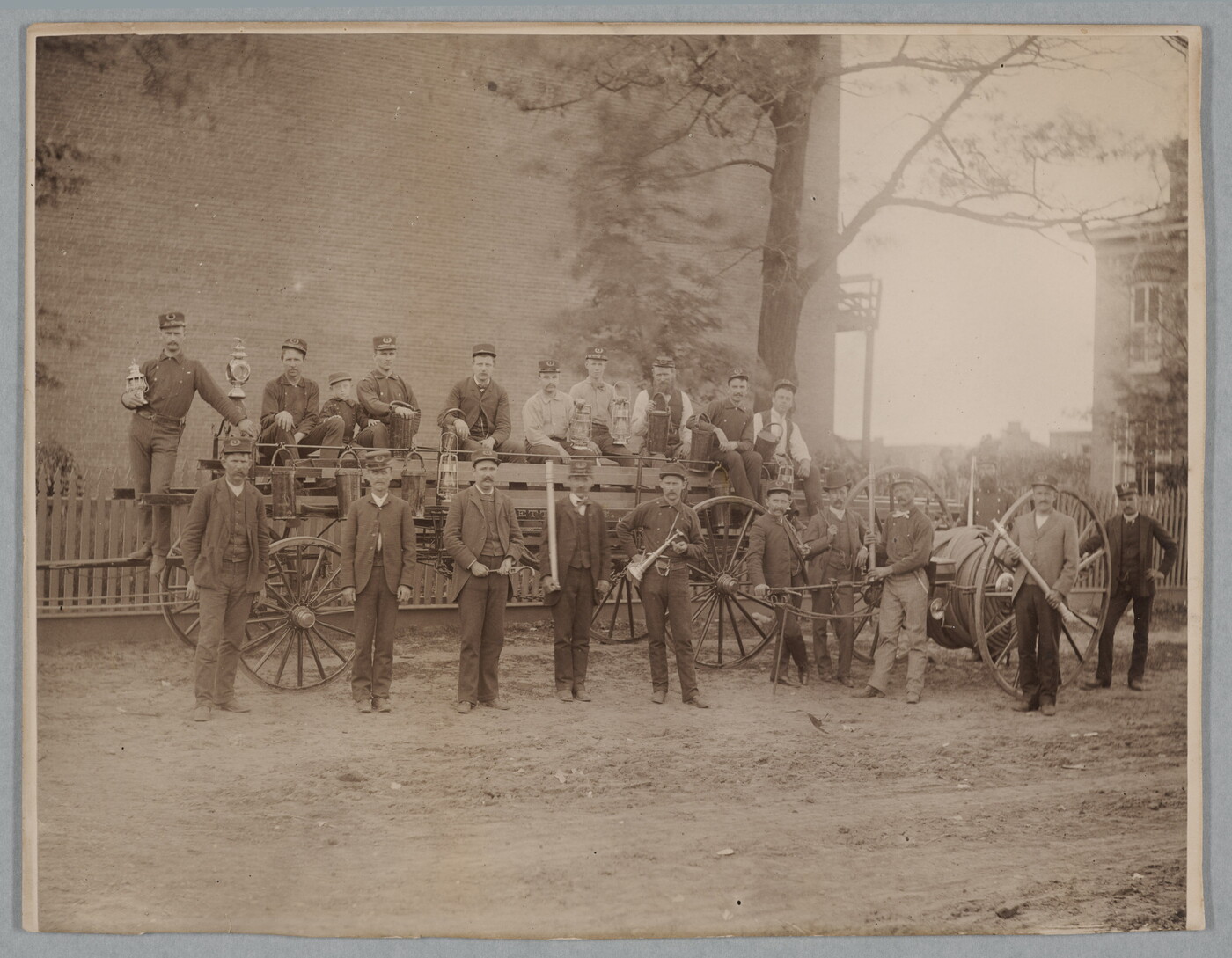 [Fire department, hook and ladder truck and hose reel cart]