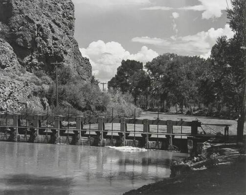 u.c. on paper label: [printed]: A PHOTOGRAPH BY \ LAURA GILPIN \SANTA FE, NEW MEXICO \ [typed]: THE FIRST IRRIGATION GATE \ 1946 \ from \ THE RIO GRANDE. RIVER OF DESTINY \ DUELL, SLOAN & PEARCE. PUB.