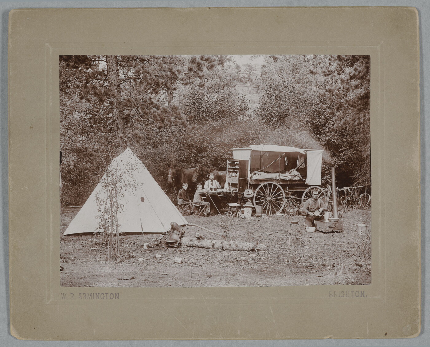 [Fred Meek, Milt Hunter and boys Willie Hunter and Tom F. Vardie, camping near Estes Park]