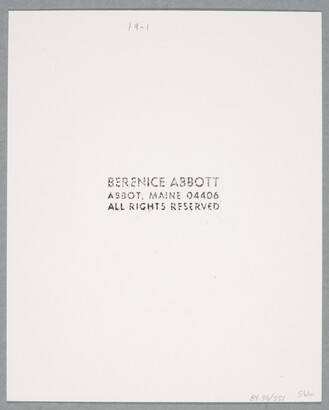 c. [stamp]: BERENICE ABBOTT \ ABBOT, MAINE 04406 \ ALL RIGHTS RESERVED