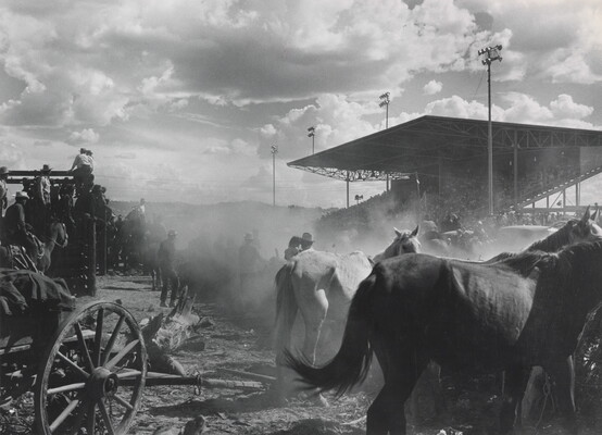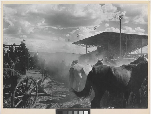 u.c. on paper label: [printed]: PHOTOGRAPHS \ BY LAURA GILPIN \BOX 1173, SANTA FE, NEW MEXICO \ [typed]: AT THE GALLUP CEREMONIAL \ From \ THE ENDURING NAVAHO