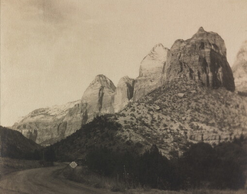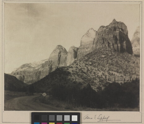 l.l. typed on paper label: The Gateway to Zion \ Zion National Park.