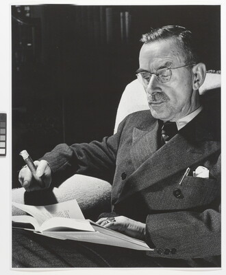inscribed: Thomas MANN \ Princeton \ Feb 1939 \ Set #3719 \ (4 x 5 Neg) \ R. Remake \ P