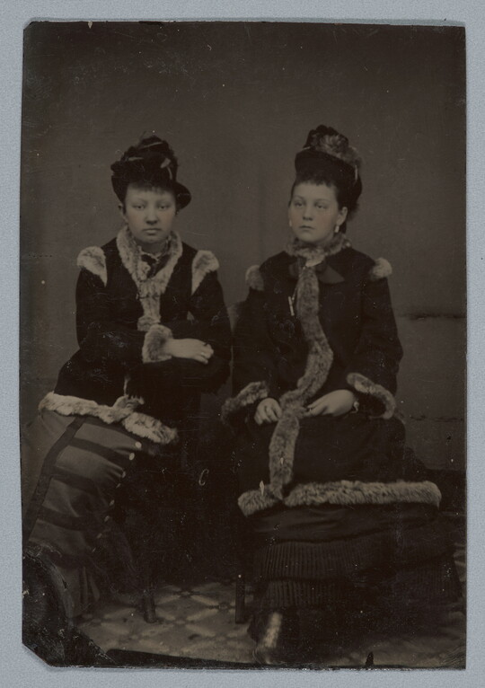 [Two women in fur-trimmed coats], 1870s-1880s