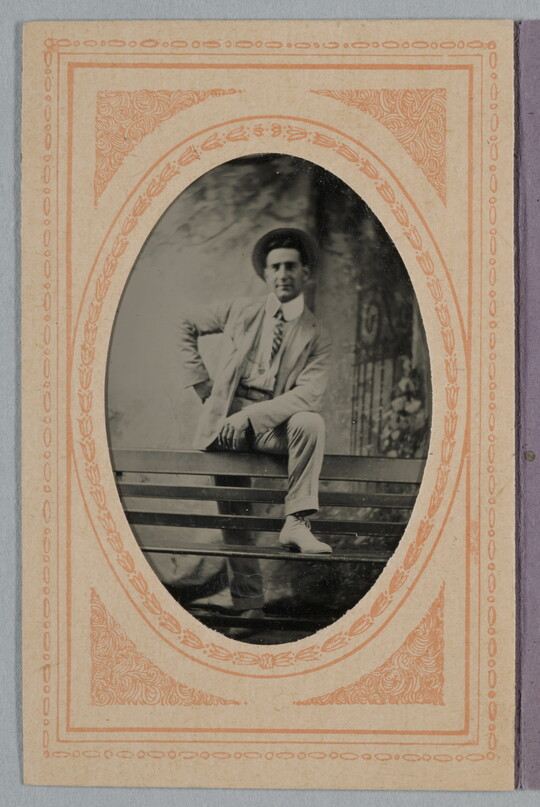 [Man standing with foot on bench, full-length], ca. 1900-1910