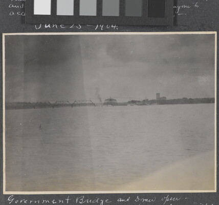 l.l. to l.r. in ink: Government Bridge and Draw open - \ Rock Island and Davenport Mississippi River \ June 25th 1904