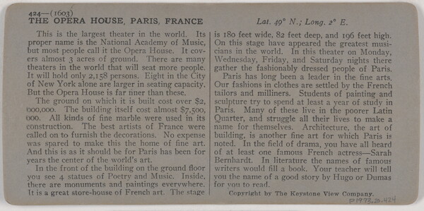 l.r. printed: 1608 - The Grand Opera, Paris, France.