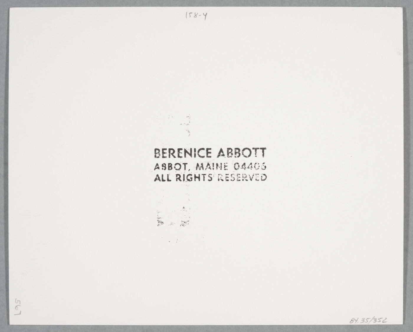 c. [stamp]: BERENICE ABBOTT \ ABBOT, MAINE 04406 \ ALL RIGHTS RESERVED