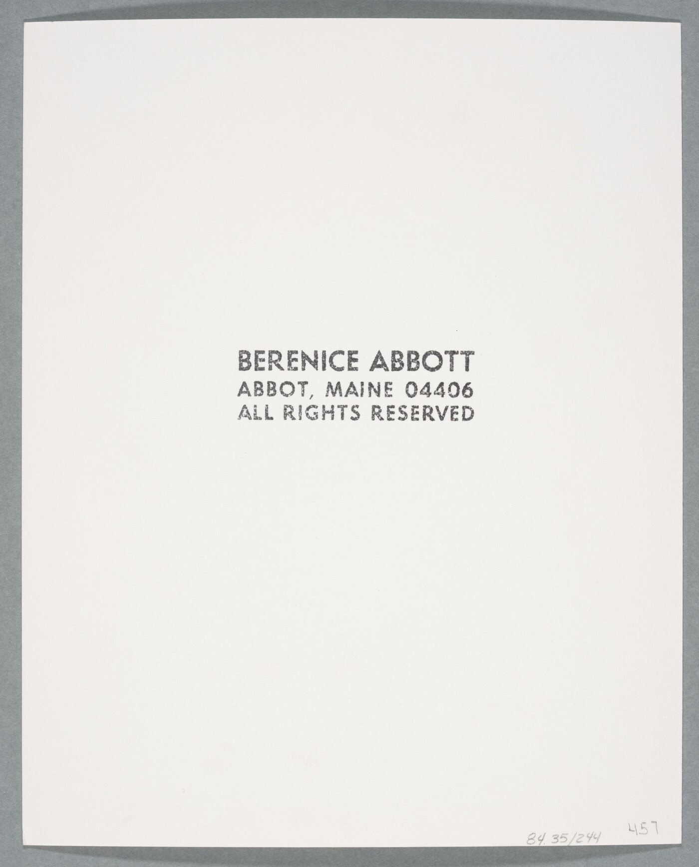c. stamp: BERENICE ABBOTT \ ABBOT, MAINE 04406 \ ALL RIGHTS RESERVED