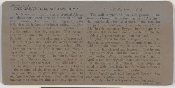 l.r. printed: 6242 - The Great Dam, Assuan, Egypt.