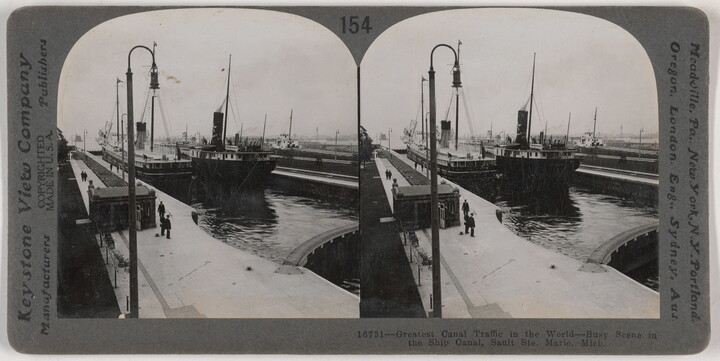 l.r. printed: 16731 - Greatest Canal Traffic in the World - Busy Scene in \ the Ship Canal Ste. Marie, Mich.