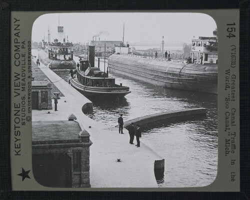 u.r. to l.r. printed along left edge: 154 (V16731) Greatest Canal Traffic in the \ World, "Soo Canal," Mich.