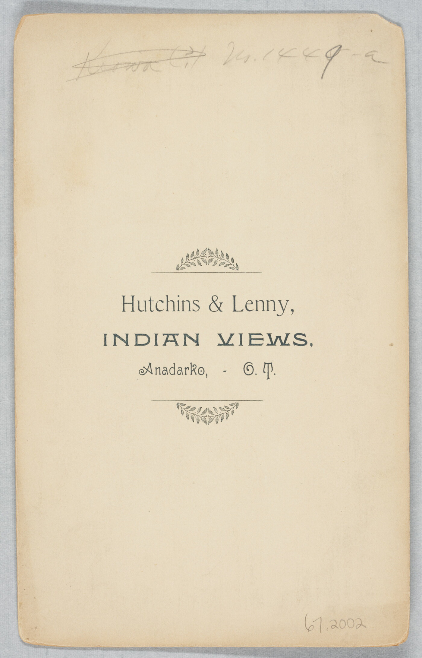 c. printed: Hutchin & Lenny, \ INDIAN VIEWS, \ Anadarko, - O.T.