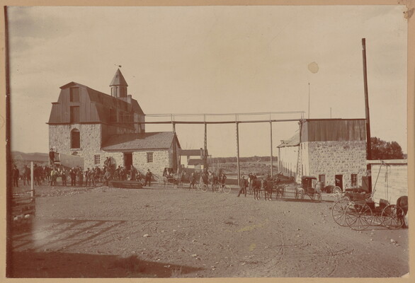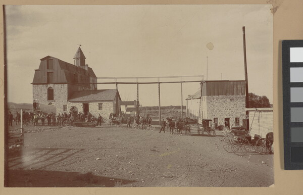 [Group portrait in front of stable]