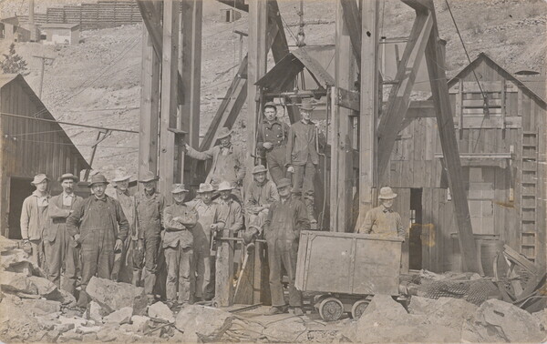 [Group portrait of miners outside of mine]