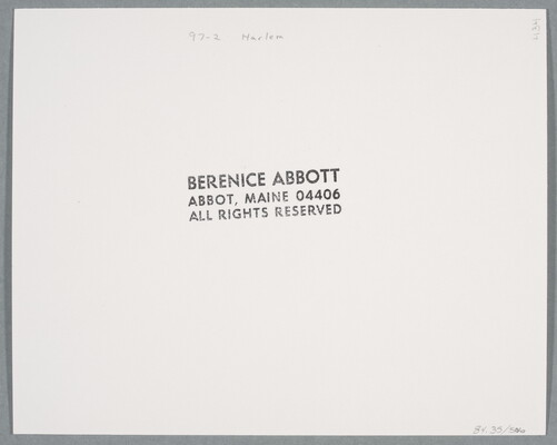 c. [stamp]: BERENICE ABBOTT \ ABBOT, MAINE 04406 \ ALL RIGHTS RESERVED