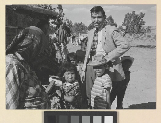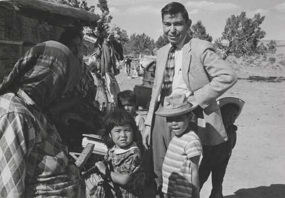 c. on paper label: [printed]: A PHOTOGRAPH BY \ LAURA GILPIN \SANTA FE, NEW MEXICO \ [typed]: HERBERT BLATCHFORD IN THE FIELD \ From THE ENDURING NAVAHO \ University of Texas Press, Pub. 1968