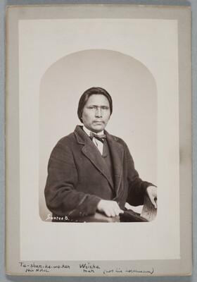 u.c. printed on paper label: Ta-shun-ka-wa-kan Wi-cha. \ His Horse man \ (not his horseman)