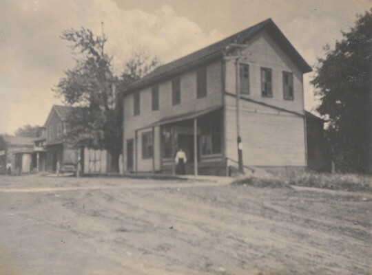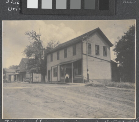 l.l. to l.r. in ink: This building is where in 1875 and 1876. \ H.L. Freeman owned his first Store \ Orion Illinois. Building is owned by \ Mrs. L.W. Freeman. June 25th 1904