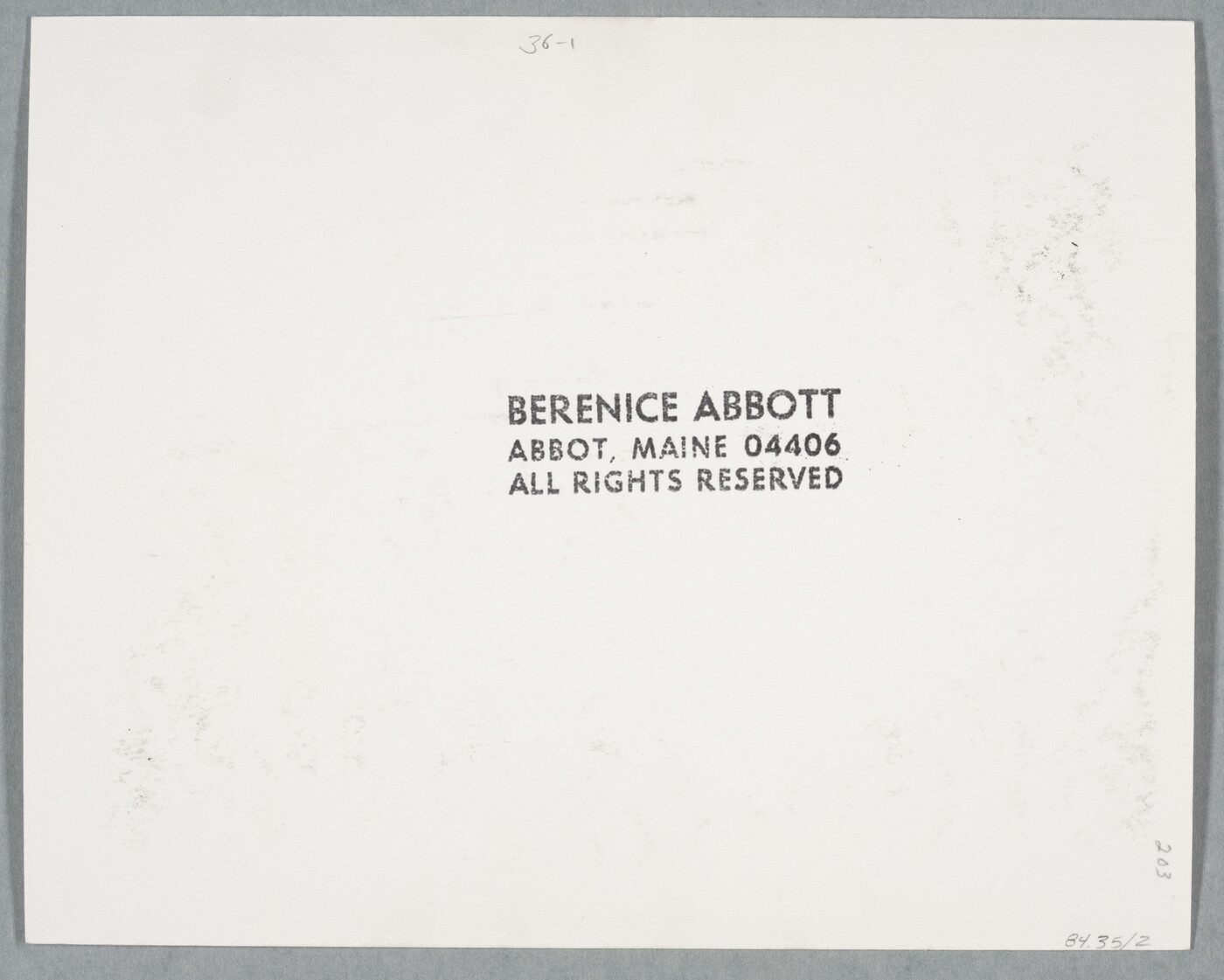c. stamp: BERENICE ABBOTT \ ABBOT, MAINE 04406 \ ALL RIGHTS RESERVED