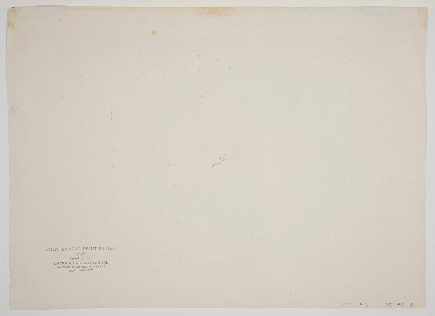 l.l. stamp: FIRST ANNUAL PRINT SERIES \ 1936 \ Issued by the \ AMERICAN ARTISTS SCHOOL \ 131 WEST FOURTEENTH STREET \ NEW YORK CITY