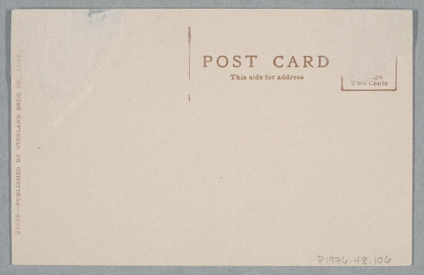 l.l. to u.l. printed along left edge: 28009 -- PUBLISHED BY OVERLAND DRUG CO., LUSK.