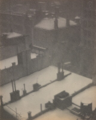 inscribed: "Housetops - Winter," \ Platinum Print. \ 36