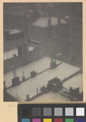 printed paper label: MUSEUM OF THE CITY OF NEW YORK \ "VIEWS OF NEW YORK - OLD AND NEW" \ Exhibited By \ PICTORIAL PHOTOGRAPHERS of AMERICA \ November 9th to November 23, 1936