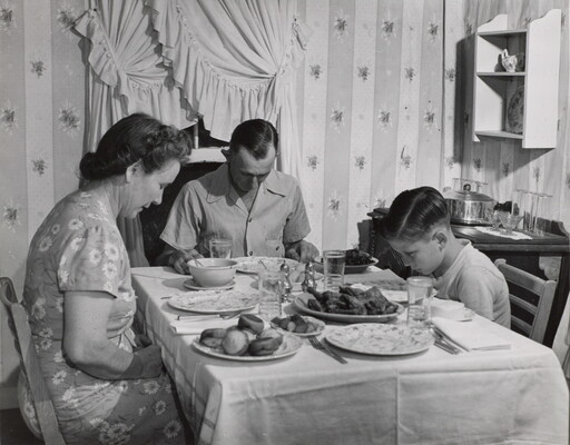 Humble Camp. Tanner Family Saying Grace before Dinner. Tomball, Texas