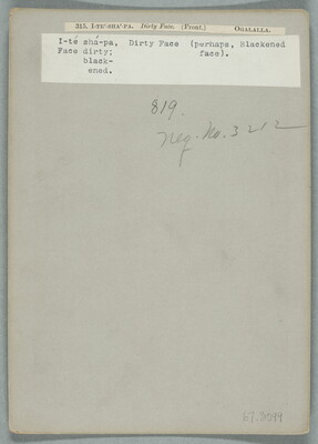 u.c. to u.r. printed on paper label: 315. I-TE-SHA-PA. Dirty Face. (Front.) OGALALLA.