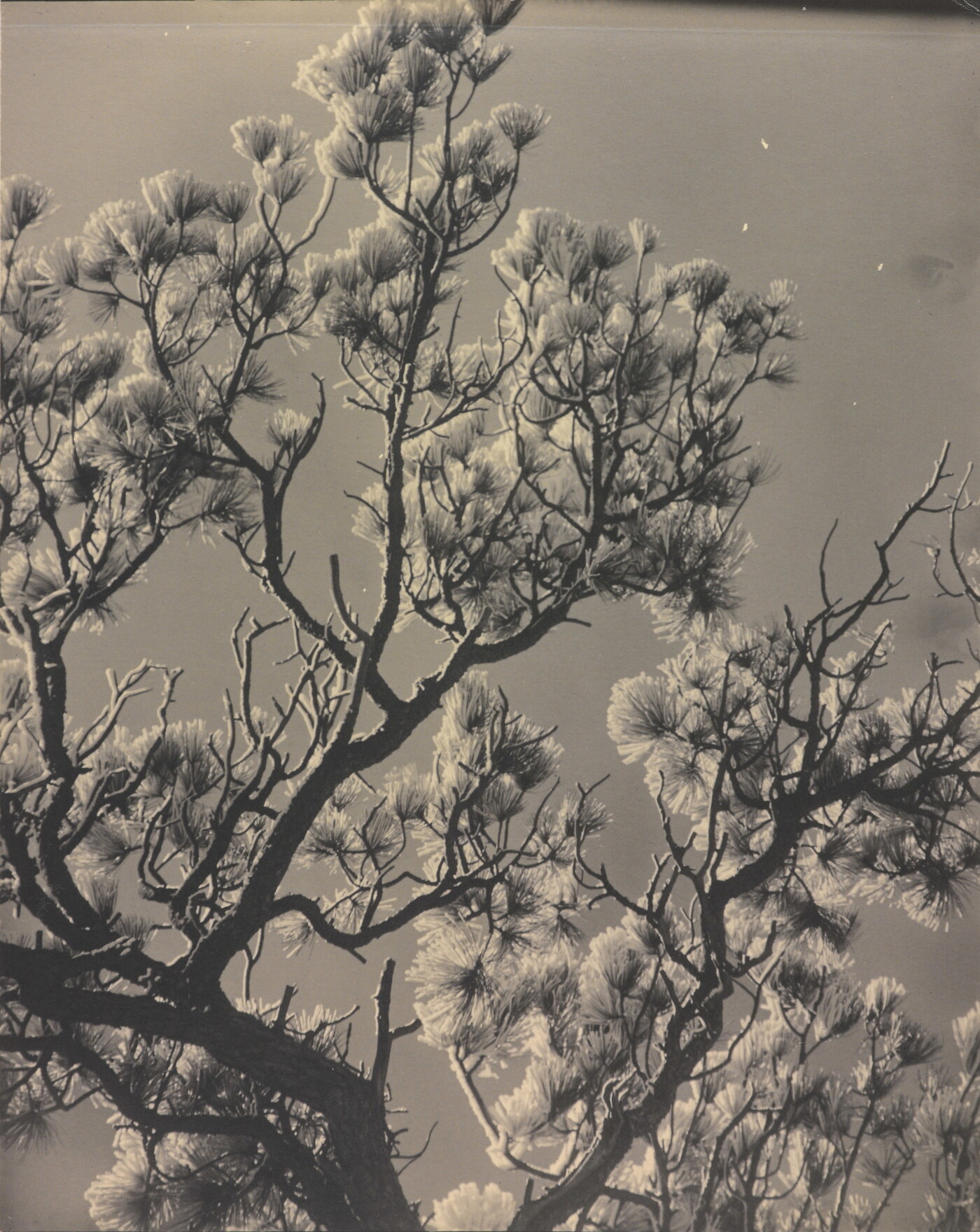 [Ice storm, pine branches against light, Colorado Springs]