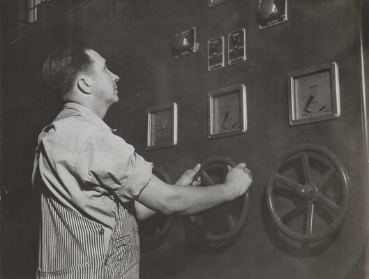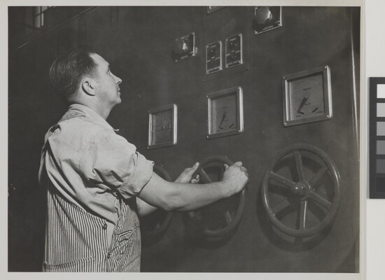 Indian Employee at Controls of Hydroelectric Station, Polsen Dam