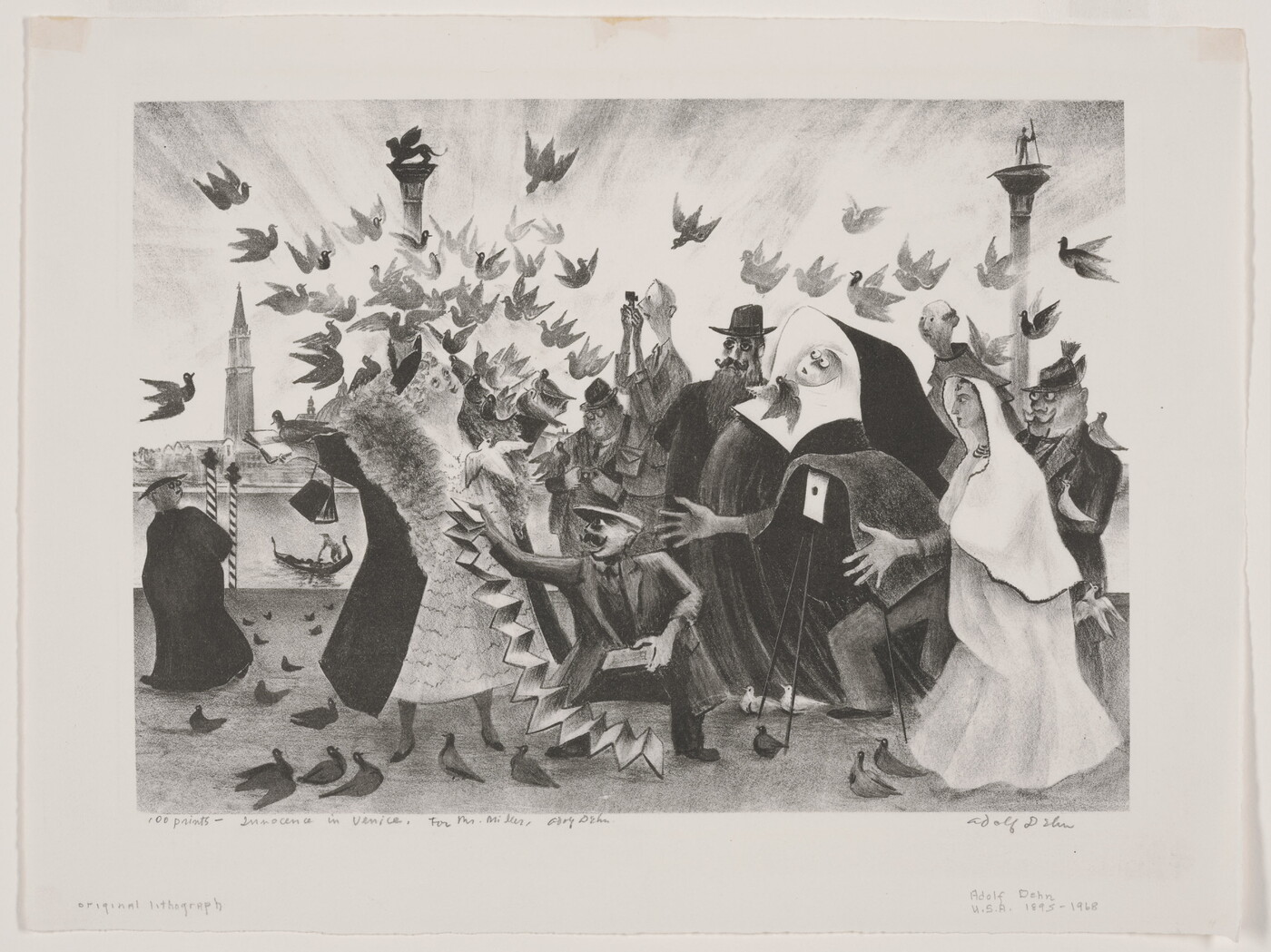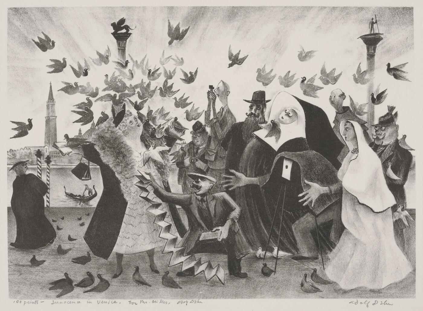 l.l. beneath image, in graphite: 100 prints- Innocence in Venice. For Mr. Miller, Adolf Dehn
