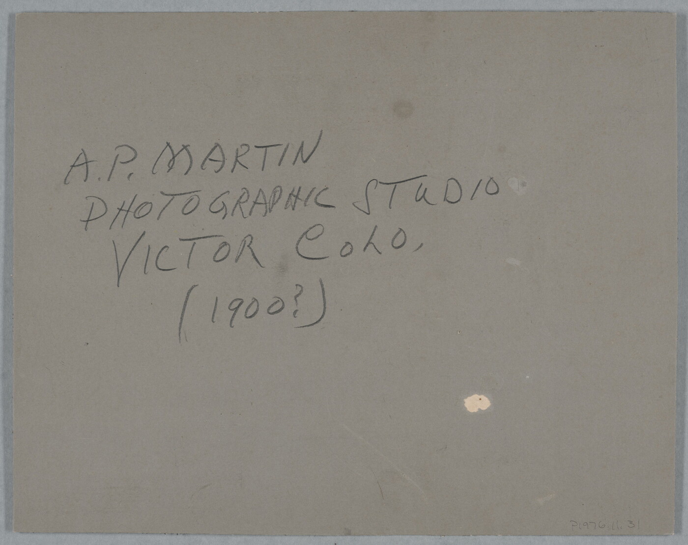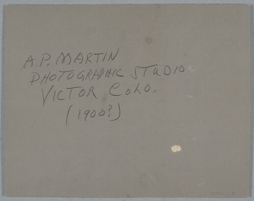 c. in graphite: A.P. MARTIN \ PHOTOGRAPHIC SUDIO \ VICTOR COLO. \ (1900?)