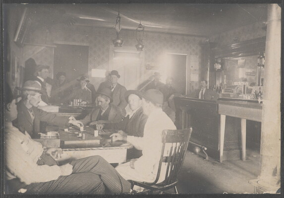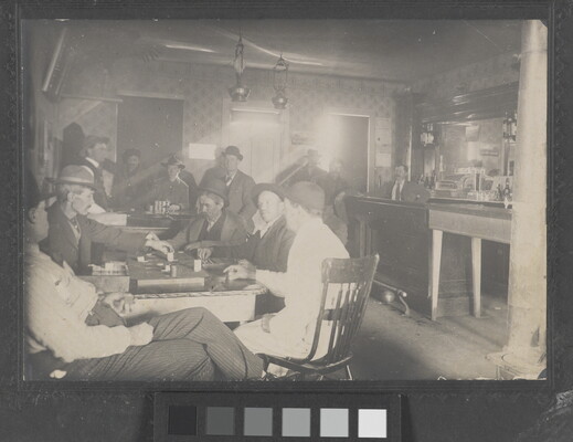 [Interior of saloon with men gambling]