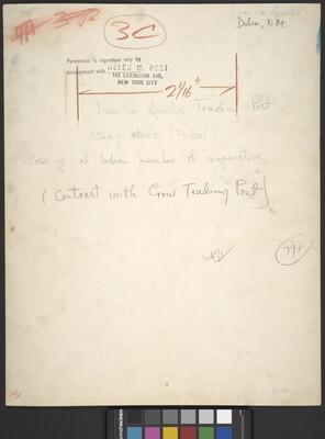 c. in graphite: Jicarilla Apache Trading Post. \ Coop store (tribal) \ Close-up of Indian member of cooperative \ (Contrast with Crow Trading post)