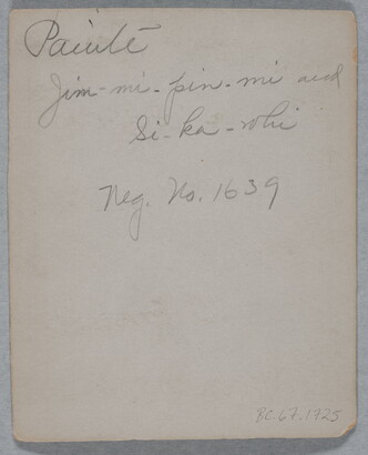 u.l. to c. in graphite: Paiute \ Jim-mi-pin-mi and \ Si-ka-whi \ Neg. No. 1639